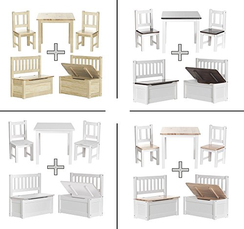 Impag Kindersitzgruppe aus europäischem Kiefer Massivholz 1 Tisch, 2 Stühle, 1 Truhenbank mit Deckelbremse Anni