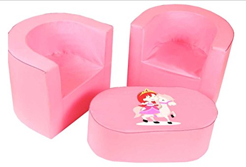 Kindermöbel 2 x Cocktailsessel Sessel + Hocker / Tisch Prinzessin Pony 3 teilig 100 % Baumwolle Coton Waschbar Produkt aus EU